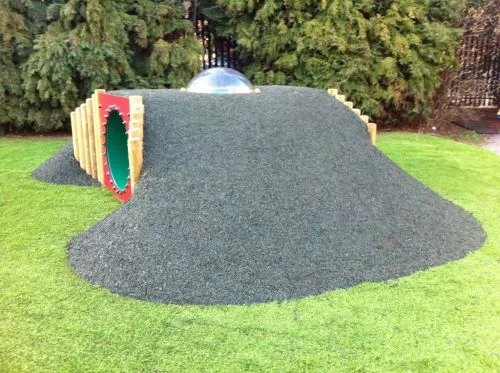 But the benefits don't stop there. Our Bonded Rubber Mulch is incredibly versatile and adaptable. It can be effortlessly molded onto uneven surfaces and inclines, making it the ideal solution for even the most challenging spaces. No matter the terrain, our bonded mulch will conform to the contours, ensuring a consistent and reliable surface throughout.